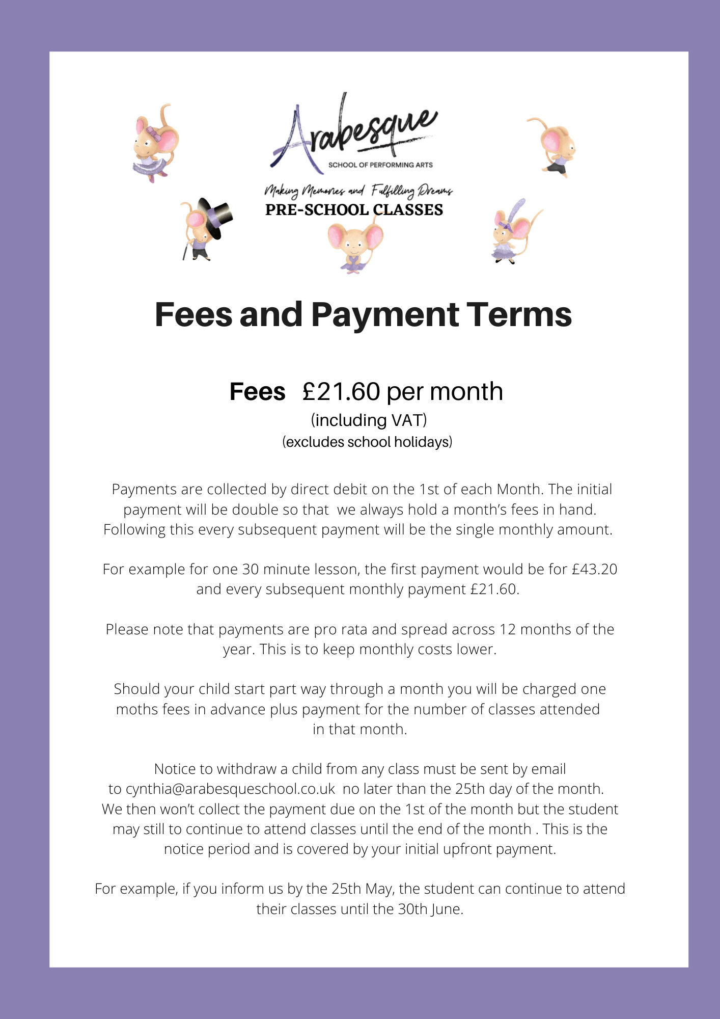 Tots Timetable & Fees & Payment