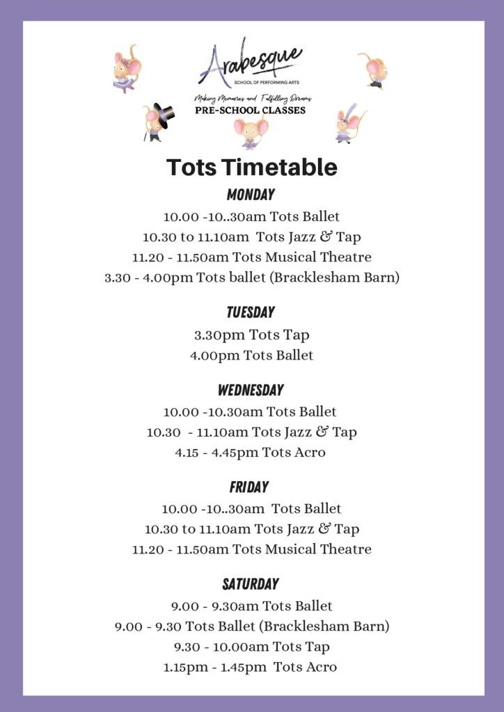 Arabesque Tots Timetable